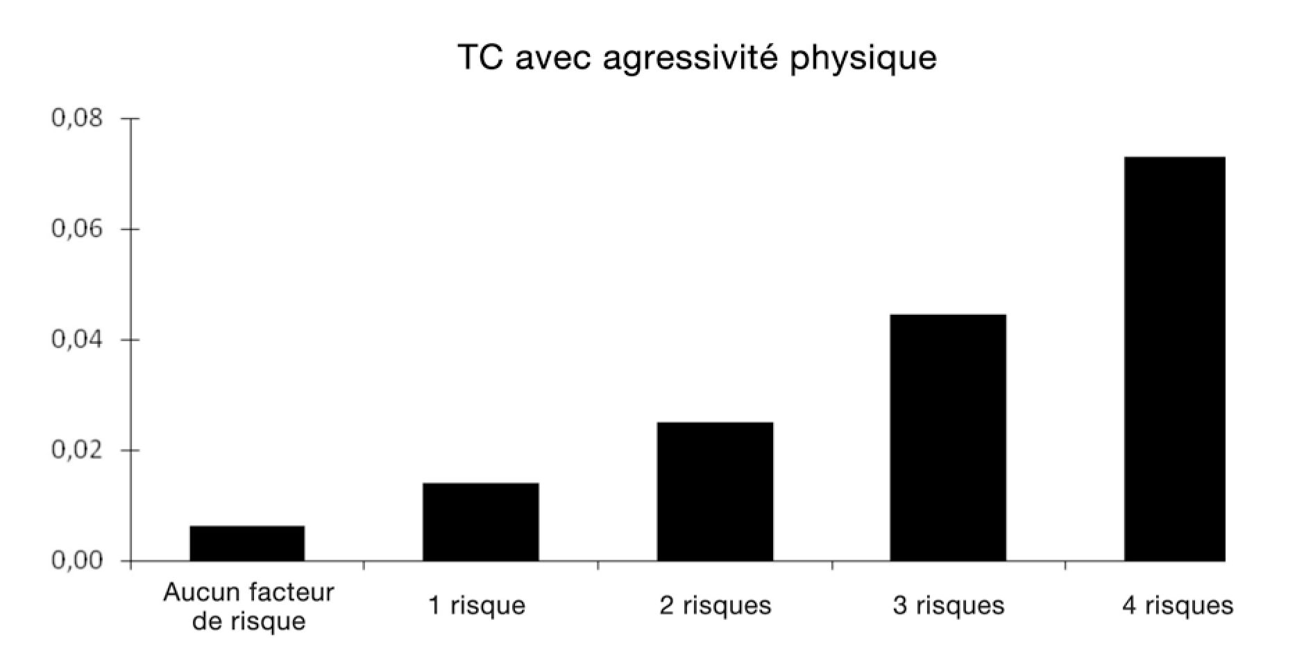 | TC de forme non agressive et aucun TC | TC avec agressivité physique et aucun TC | TC mixte-grave et aucun TC | ||||