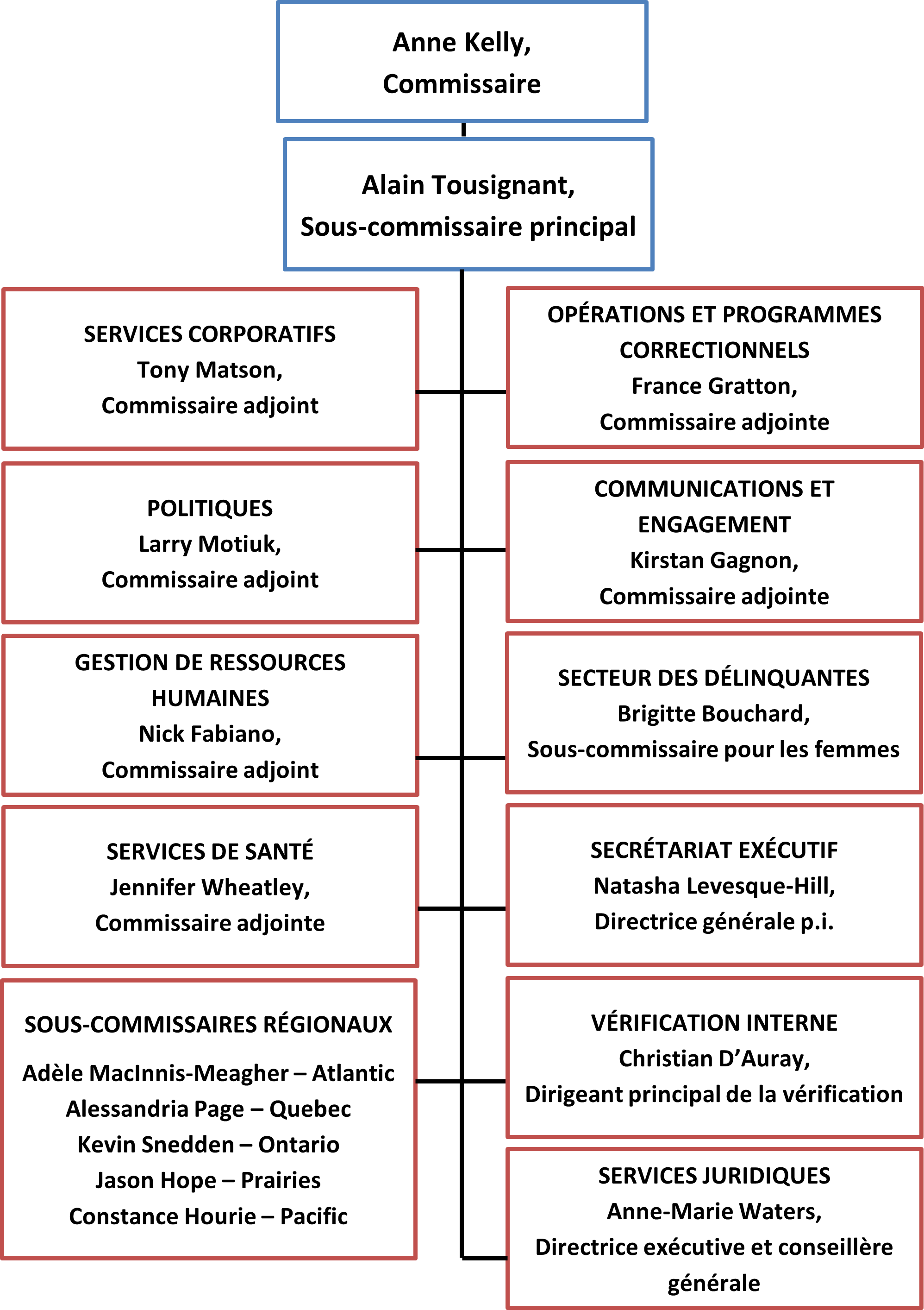 Le SCC administre les peines de deux ans ou plus imposées par les tribunaux aux contrevenants adultes; surveille les contrevenants sous diverses formes de mise en liberté sous condition dans la collectivité; et aide à protéger la société en encourageant les contrevenants à devenir des citoyens respectueux des lois tout en exerçant sur eux un contrôle raisonnable, sûr, sécuritaire et humain. Le SCC assure également la surveillance postpénale des contrevenants visés par une ordonnance de surveillance de longue durée pendant une période pouvant aller jusqu'à dix ans et fournit des services aux victimes d'actes criminels, comme l'échange d'information et la sensibilisation pour soutenir les victimes. Il s'occupe de la gestion de 43 établissements de différents niveaux de sécurité, dont quatre pavillons de ressourcement autochtones. Le SCC est dirigé par un commissaire nommé pour une période indéterminée.