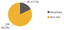 The advertised and non-advertised pie chart shows the number and percentages of appointments. There is a total of 45 advertised appointments (17.7%) and a total of 209 non-advertised appointments (82.3%).