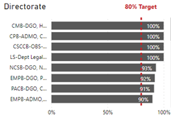 The Self-ID Response Rate bar graph shows the percentage of employees who self-id by directorate. The percentage is as follows: CMB-DGO-Human Resources 100%, CPB-ADMO 100%, CPB-OBS-NCPC Exec Dir Office 100%, LS-Dept Legal Services Unit 100%, NCSB-DGO, Natl Security Ops 93%, EMPB-DGO, Programs 92%, PACB-DGO, Cab Parl Aff EX Svcs 91% and EMPB-ADMO, Emerg Mgmt & Prog 90% with 80% being the target response rate.