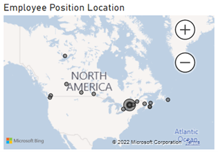 The Employee Position Location map identifies where Public Safety's offices are located and number of employees in that location. Location with count of employees are as follows: NWT 1, Victoria 1, Burnaby 23, Edmonton 18, Regina 7, Winnipeg 13, Toronto 40, 269 Laurier 898, 340 Laurier 280, 257 Slater 103, 284 Wellington 4, Montréal 26, Québec 1, Fredericton 10, Charlottetown 1, Dartmouth 4 and St John's 4.