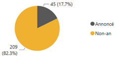 Le graphique à secteurs des nominations annoncées et non annoncées indique le nombre et le pourcentage de nominations. Il y a un total de 45 nominations annoncées (17,7 %) et un total de 209 nominations non annoncées (82,3 %).