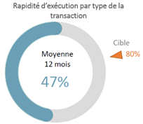 L'indicateur de la rapidité selon le type de transaction indique que le pourcentage moyen de transactions en temps opportun était de 47 % au cours des 12 derniers mois, avec une cible de 80 %.